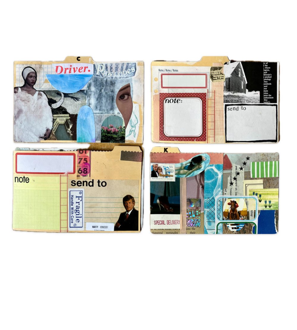 Paper ephemera - Vintage illustrations and diagrams, retro magazine and book clippings, playing cards, small envelopes and weird stickers, etc.